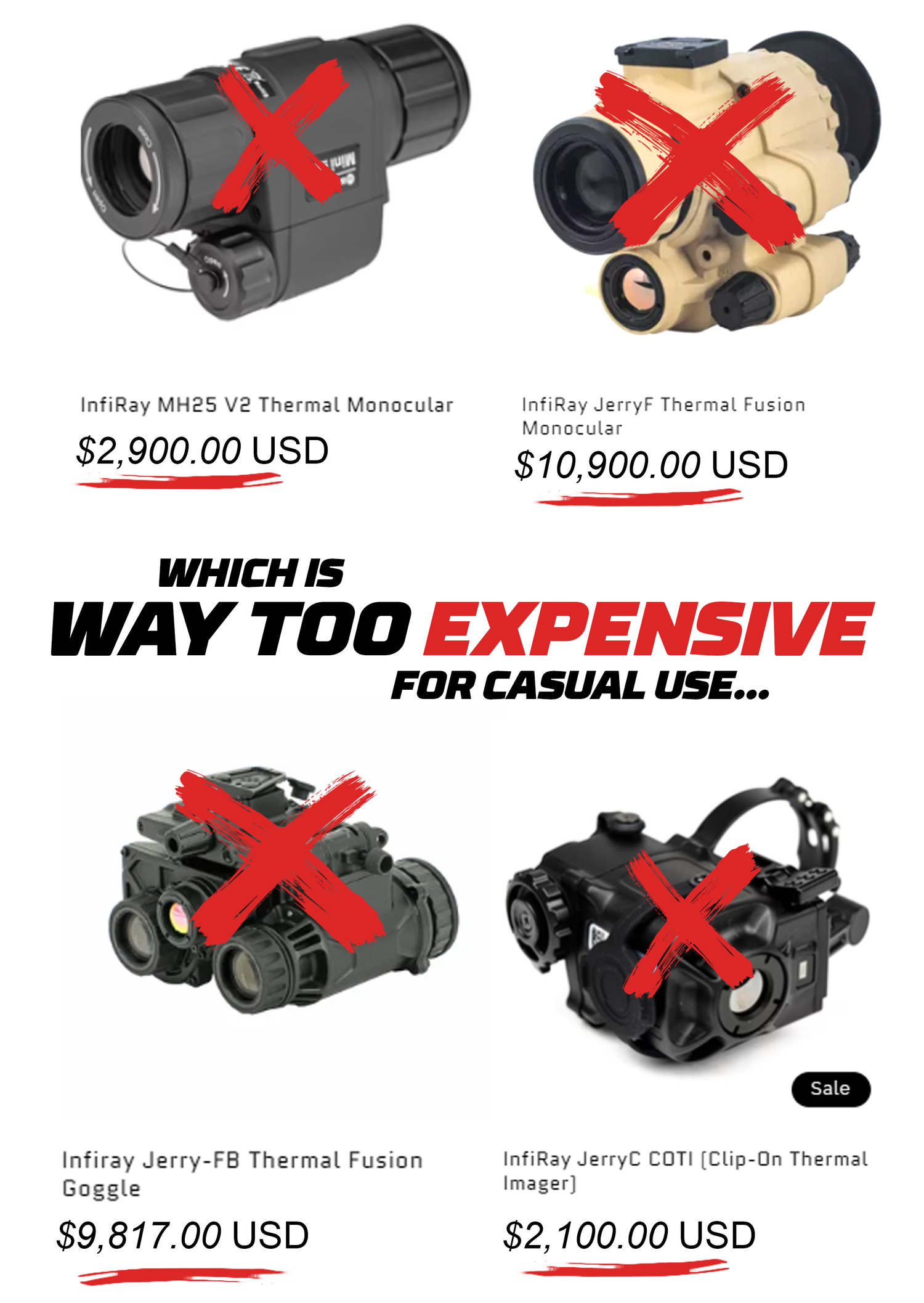 Designed for casuals and built for play. For the first time ever, experience thermal vision goggles for under $500.